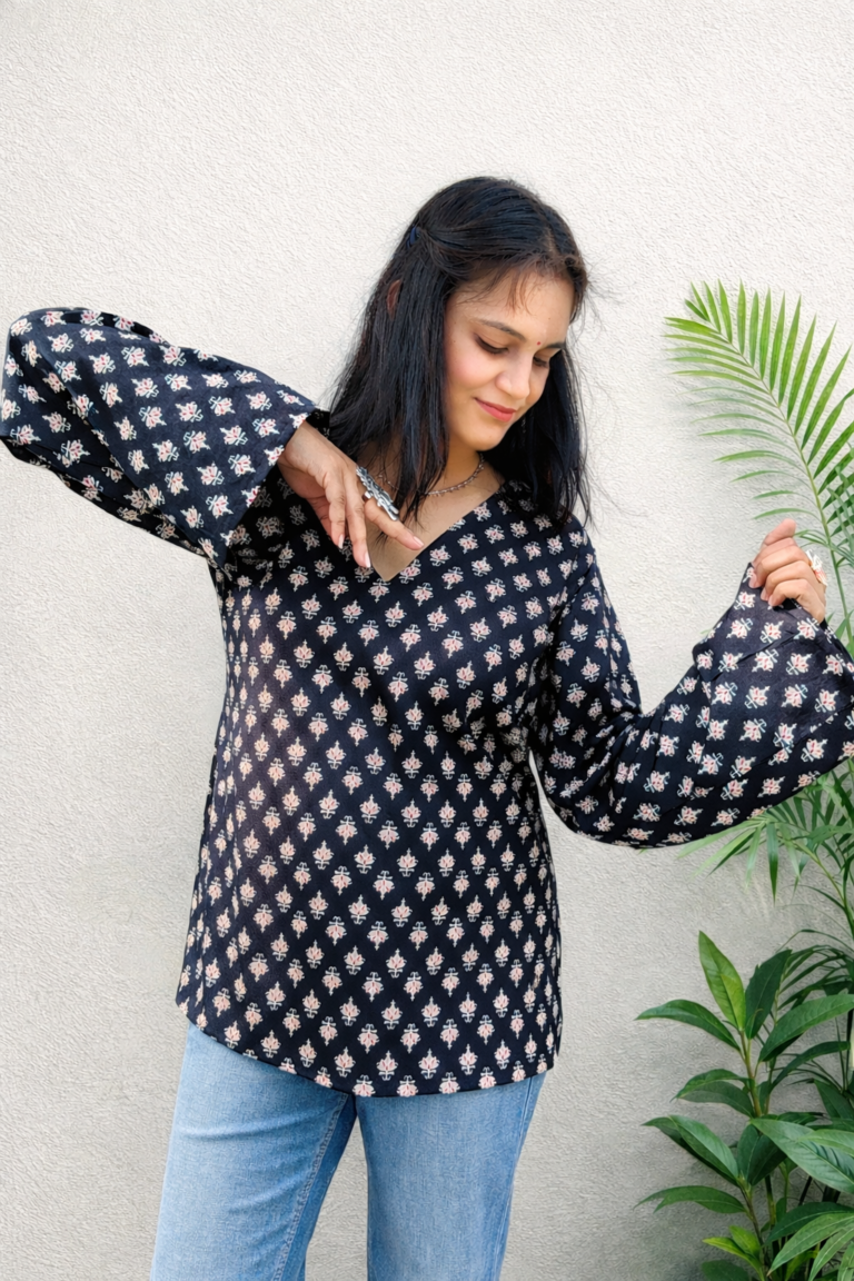 Made from soft and breathable fabric, the Kalyani kurti ensures all-day comfort while maintaining a stylish look. Its flattering silhouette and timeless pattern make it perfect for casual outings, office wear, or small festive occasions.
